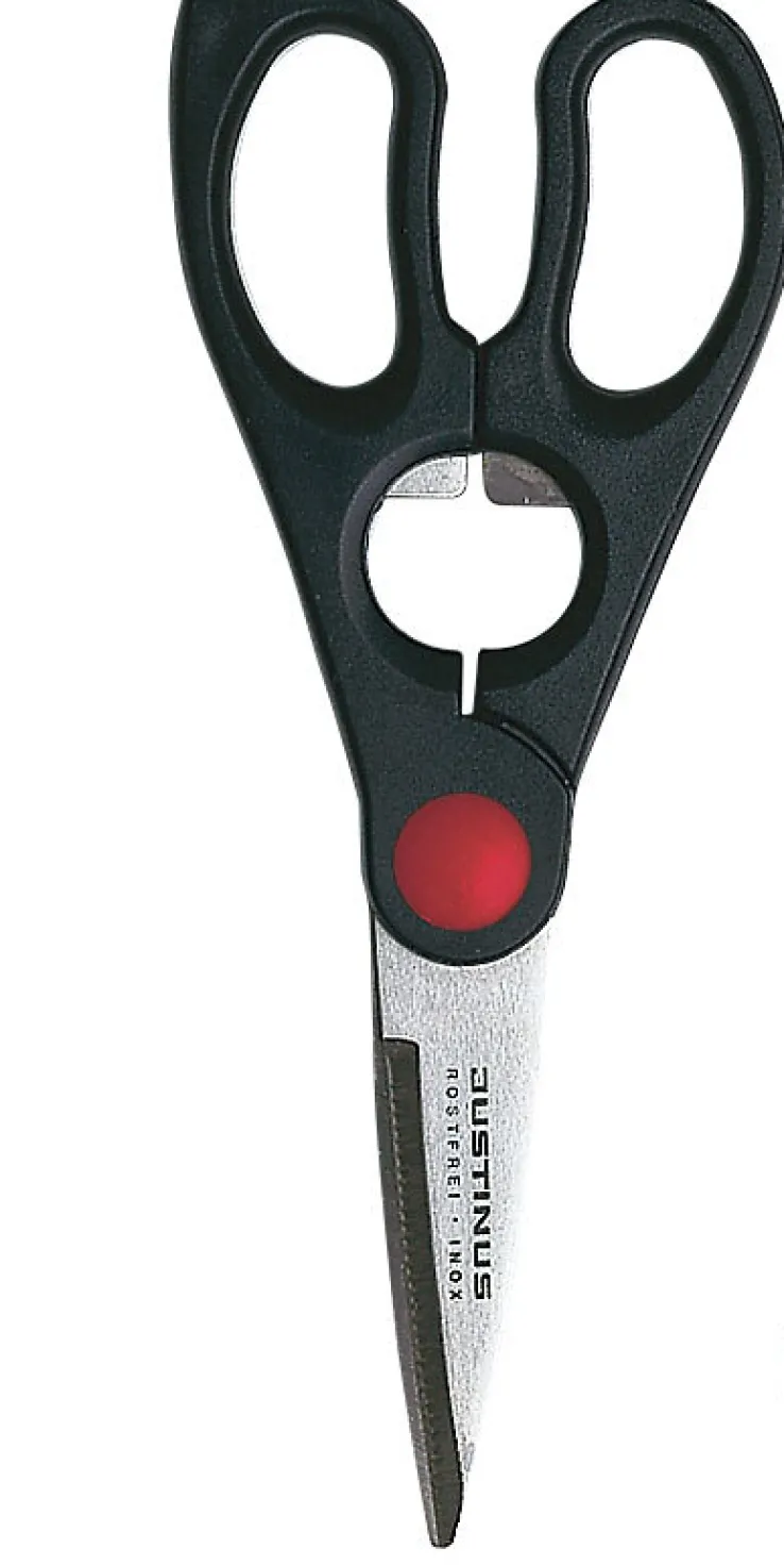 Mit der Küchenschere RONDA gelingt Ihnen das absolut saubere und präzise Zuschneiden, Zerteilen und Portionieren von Fleisch, Fisch, Geflügel oder Gemüse. Sie tranchieren professionell und akkurat das gewünschte Stück ganz ohne mühsamen Aufwand. Im Handumdrehen entstehen so Gerichte in einer perfekten und makellosen Zubereitung. Die Form und das Design des hochwertigen Utensils bieten Ihnen stets einen rutschfesten und stabilen Zugriff. Zugleich erlauben die handlichen Ausmaße und die angenehme Haptik der Schere ein präzises Arbeiten auch an den entlegensten Stellen. Das rostfreie Material des erstklassigen Spezial Klingenstahls bürgt für höchste Qualität und Langlebigkeit. Reinigen lässt sich die Schere problemlos in der Spülmaschine und ist danach ohne jede Einschränkung wieder einsatzbereit. Auch für den Haushalt ist das nützliche Utensil geeignet und lässt sich zum Schneiden von Papier, Kunststoff oder Karton nutzen. Die Küchenschere RONDA aus dem Hause JUSTINUS ist in seiner Vielseitigkeit und Zuverlässigkeit ein unverzichtbarer Bestandteil der modernen Küche von heute.