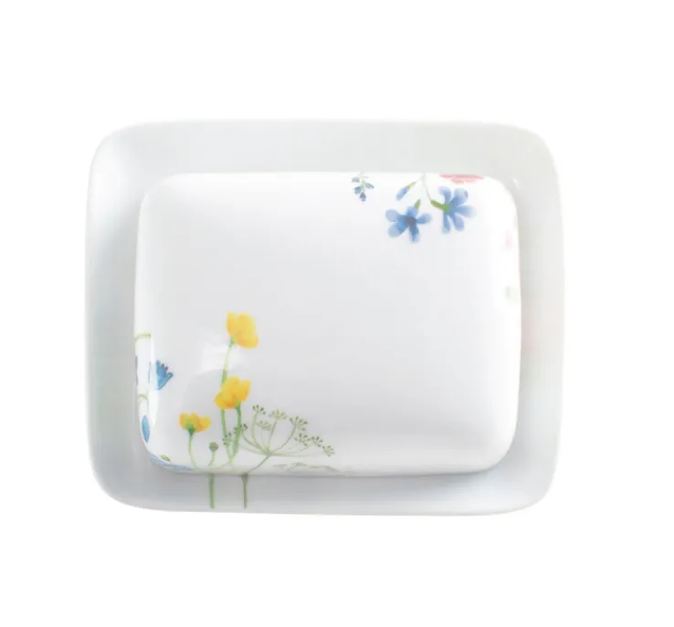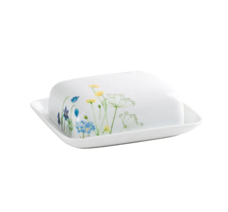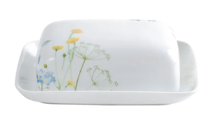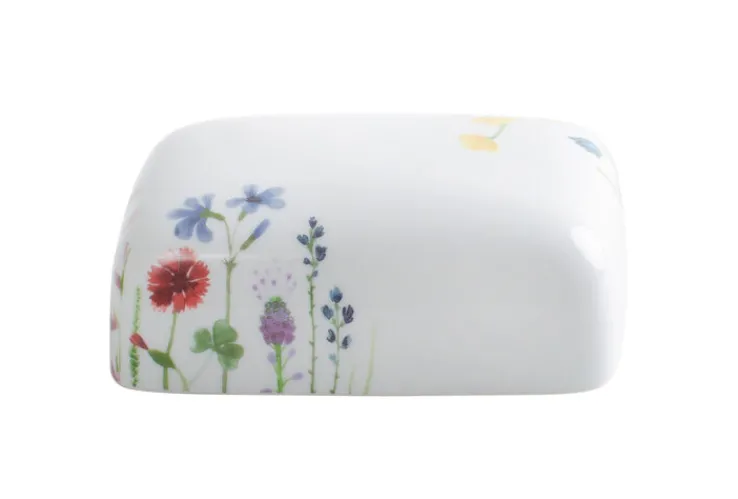 Die aparte zweiteilige KAHLA Butterdose FIVE SENSE aus Porzellan punktet mit einem hübschen mehrfarbigen Muster. Zierlichen Wiesenblumen auf weißem Porzellan bereichern Ihren Frühstückstisch und sorgen schon morgens für gute Laune.