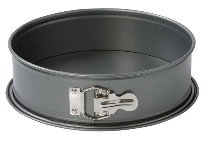 Die Backform besteht aus Flachboden und Ring. Das Metall ist mit einer Antihaftbeschichtung versehen, die ein Anbrennen verhindern kann. Der Metallring lässt sich mithilfe des Spannhebels auslaufsicher schließen und nach dem Backen leicht wieder öffnen.