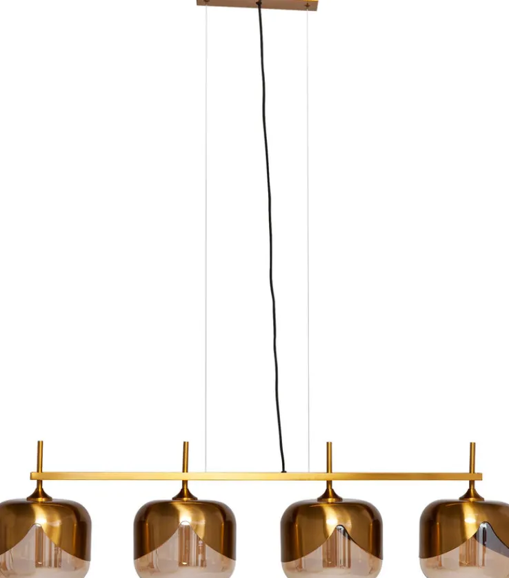 Mit der goldfarbigen KARE DESIGN Retrofit Hängelampe GLOBLET QUATTRO kommt eine imposante Beleuchtung über Ess- und Wohnzimmertisch, die den Tisch gut ausleuchtet und auch optisch viel zu bieten hat.