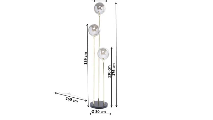 Die 3-flammige Retrofit Stehlampe AL CAPONE TRE hat eine Höhe von etwa 176 cm und verleiht modern und klassisch eingerichteten Wohnzimmern, Esszimmern oder Schlafzimmer einen gewissen Glamour. Durch die Kombination aus edlen Materialien wie schwarzem Marmor, goldfarbigem Stahl und farbigem Glas ist die Stehlampe unbeleuchtet und beleuchtet ein Blickfang in jedem Bereich. Sie sorgt jederzeit für ein harmonisches Licht und Gemütlichkeit.
