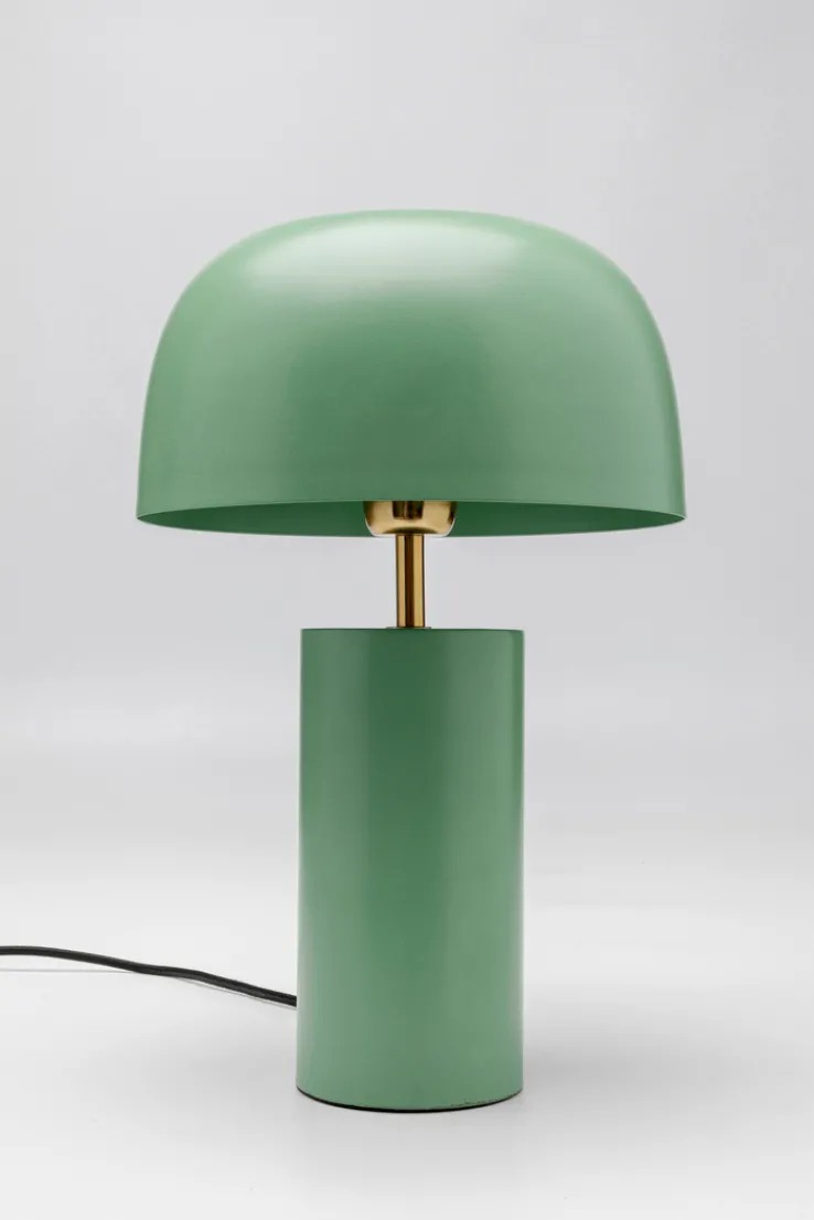 Die Farbe der Leuchte ist ein elegantes Salbeigrün. Der Lampenschirm und der Sockel bestehen aus lackiertem Stahl, was der Leuchte eine robuste und zugleich glamouröse Ausstrahlung verleiht. Die Leuchte ist mit einer E14-Fassung ausgestattet und ermöglicht den Einsatz von wechselbaren Leuchtmitteln bis zu 15 Watt. Ein praktischer Schnurschalter sorgt für eine einfache Bedienung. Die Zuleitung hat eine Länge von 200 cm, was flexible Platzierungsmöglichkeiten bietet.