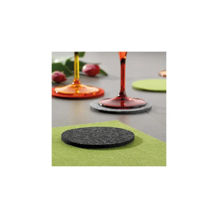 Die attraktiven kela Untersetzer ALIA sind aus robustem Filz gefertigt und verfügen über einen Durchmesser von 10 cm. Sie sind vielfältig einsetzbar und schützen Oberflächen und Tische vor etwaigen Wasser- oder Fettflecken. Ablagen werden vor unliebsamen Kratzern bewahrt. Der textile Werkstoff Filz ist rutschfest, haftet nicht am Boden von Gefäßen, bleibt zuverlässig in seiner Position und bietet selbstverständlich auch Hitzeschutz bei Tassen oder Bechern, die mit heißen Getränken gefüllt sind. Unter Blumentöpfen, Vasen und Ölflaschen eignen sich die kela Untersetzer ebenfalls hervorragend.