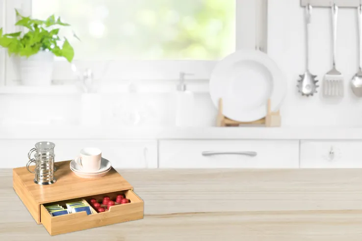 Die Vorratsdose aus der Serie BAMBUS von Kesper überzeugt durch ihr natürliches Design und die Verwendung von hochwertigem Bambusholz. Mit einer Breite von 31 cm, einer Höhe von 8 cm und einer Tiefe von 34 cm bietet sie ausreichend Platz für die Aufbewahrung verschiedener Lebensmittel. Das Material ist lebensmittelecht, was die sichere Lagerung von Lebensmitteln gewährleistet. Die rechteckige Form und die natürliche braune Farbgebung fügen sich harmonisch in jede Kücheneinrichtung ein. Die Vorratsdose verfügt über ein praktisches Schubladensystem mit mehreren Fächern, das eine übersichtliche Organisation ermöglicht. Die glatte Oberfläche des Bambus verleiht der Dose eine elegante Optik und sorgt für eine einfache Reinigung.