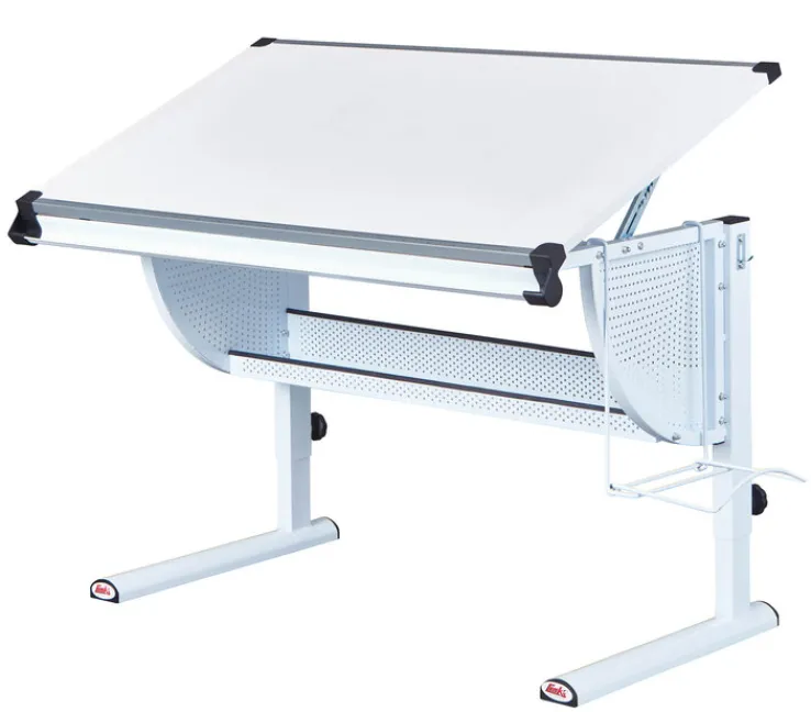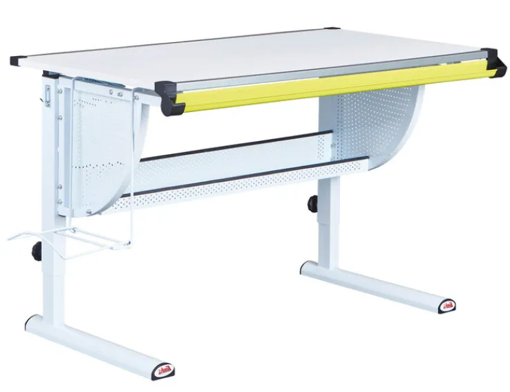 Der höhenverstellbare Kinder Schreibtisch MIKA in Weiß passt sich den Bedürfnissen von Kindern perfekt an und überzeugt als smarter Begleiter für konzentriertes Lernen.