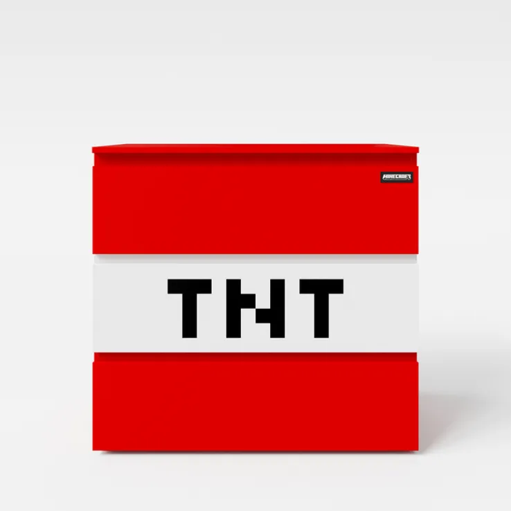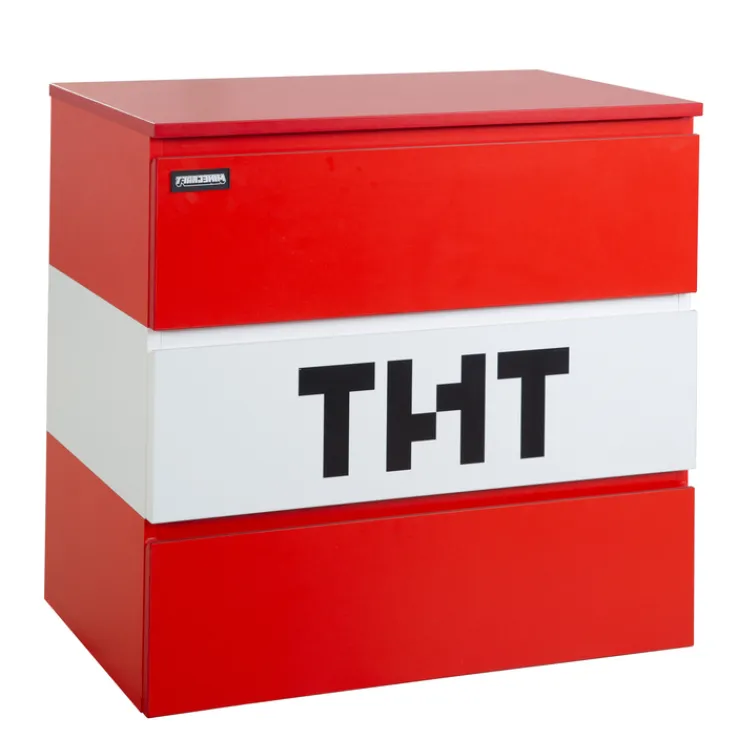 Drei Schubkästen sorgen für großzügigen Stauraum und damit für Ordnung im Kinderzimmer. Das TNT-Design wird zum Blickfang und sorgt dafür, dass die Kinder-Kommode MINECRAFT 80 cm rot/ weiß/ schwarz zum Lieblingsstück wird. Diese Kommode wiegt 37 kg und bietet Sicherheit, da sie nicht verrutscht werden kann. Ihr frisches und kindgerechtes Design sorgt für Freude und reiht sich in jede farbenfrohe und fröhliche Kinderzimmereinrichtung ein.