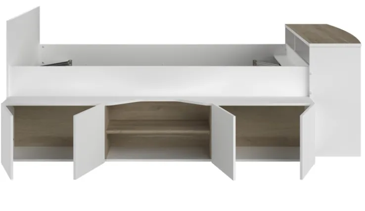 Das Parisot Hochbett CLEO 1 in Weiß ist mehr als nur ein Bett. Dank durchdachtem Design spart es Platz im Kinderzimmer, denn der Schreibtisch ist bereits integriert.