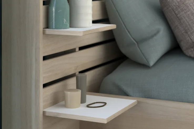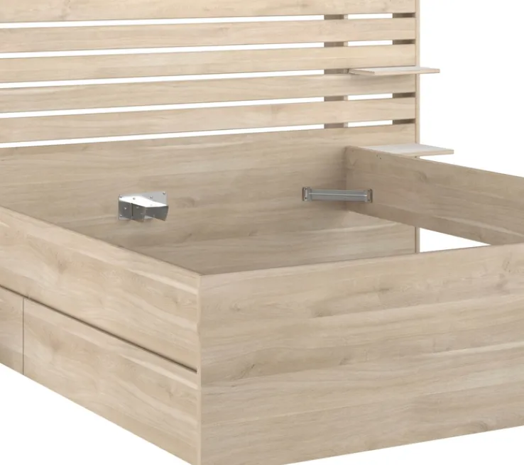 Das Stauraumbett ESCALE 2 ist die ideale Lösung für kleine Räume oder für alle, die zusätzlichen Stauraum benötigen. Die stabile Konstruktion und die funktionale Aufteilung garantieren eine lange Lebensdauer. Dieses Bett vereint sowohl Stil als auch praktischen Nutzen und macht es zu einer hervorragenden Wahl für jedes Schlafzimmer.