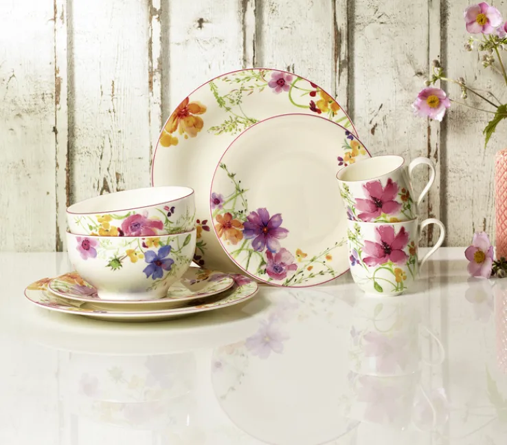 Das Design des Services ist mehrfarbig und zeigt ein florales Muster, das in zarten Rosa-, Lila- und Gelbtönen gehalten ist. Diese Farben verleihen dem Geschirr eine frische und lebendige Ausstrahlung. Das Porzellan ist mikrowellengeeignet, was den täglichen Gebrauch erleichtert. Mit einem Gewicht von 3,040 kg ist das Set robust und dennoch handlich. Dieses Geschirrset ist ideal für alle, die Wert auf Qualität und ansprechendes Design legen.