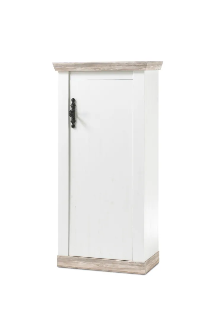 Der weiße Korpus der Kommode FLORENZ wird nach unten und oben in die graubraune Pinie-Oslo-Dekor gehüllt, für einen noch stärkeren Kontrast sorgt der formschöne Griff – der den klassischen Griffformen bei antiken italienischen Möbelstücken nachempfunden wurde. Dank der überschaubaren Breite, könnte die Kommode zudem kleinere freie Flächen im Wohn- oder Schlafzimmer auf geschickte Weise füllen.