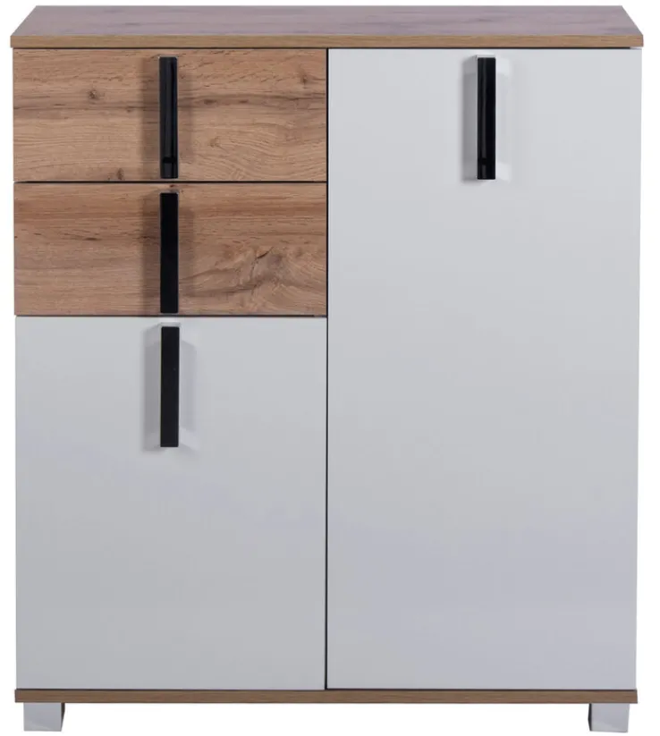 Die in der Farbe Weiß und dem Farbton Eiche Landhaus gehaltene Kommode LUCA, die die Maße 80,6 x 94,8 cm aufweist, sieht nicht nur äußerst ansprechend aus, sondern überzeugt auch dank ihrer Durchdachtheit.