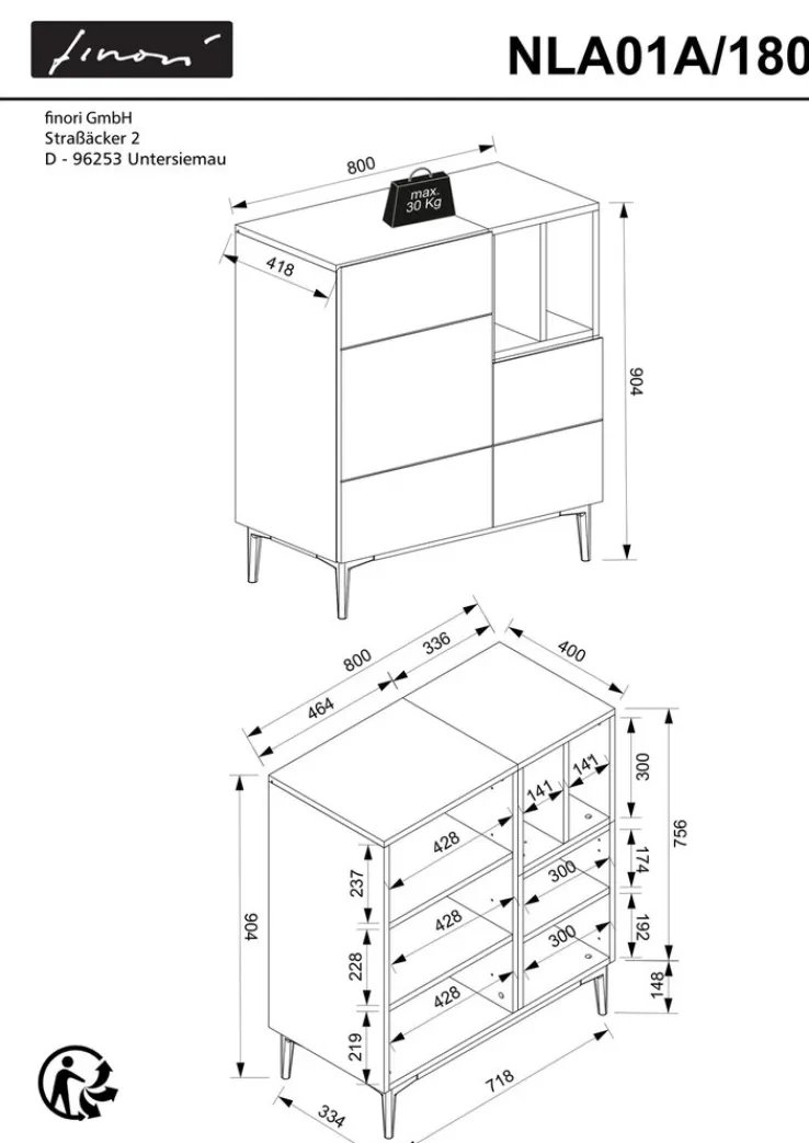 Anzahl Drehtüren inklusive: 2Anzahl offene Fächer inklusive: 2