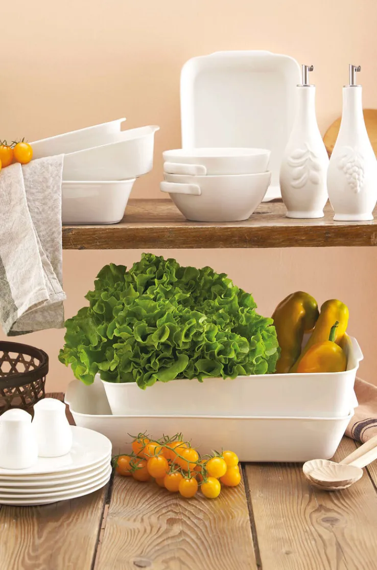 Die klassisch schöne Auflaufform ANGHIARI lässt sich problemlos zum Anrichten auf dem Esstisch verwenden. Das minimalistische Design ist absolut zeitlos. Das Porzellan kann zudem die Hitze aus dem Backofen gut speichern und hält das Essen für längere Zeit warm. Schlichte Griffe an den Seiten verhindern, dass die Form beim Tragen wegrutscht. Zum Aufwärmen übrig gebliebener Reste kann die Auflaufform bedenkenlos in die Mikrowelle gestellt werden. Nach Gebrauch lässt sich die glatte, lasierte Oberfläche leicht abwischen oder in der Spülmaschine reinigen.