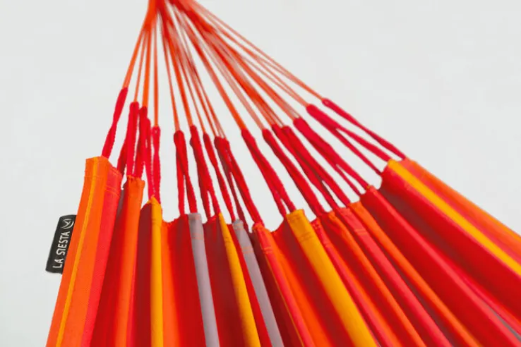 Die LA SIESTA Hängematte Einzel BRISA im farbenfrohen Toucan Design verleiht dem Outdoorbereich einen gemütlichen Liegeplatz der zum Lesen und Entspannen einlädt.