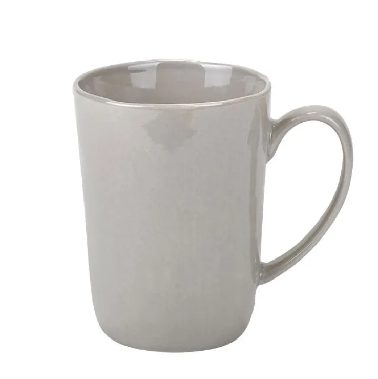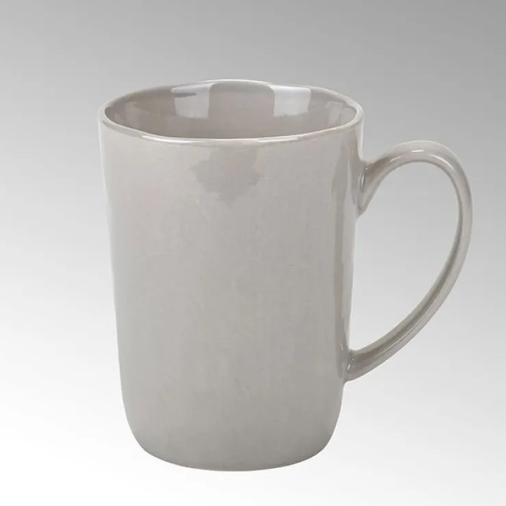 Der Henkelbecher aus der LAMBERT Geschirrserie PIANA ist 11 cm hoch und besteht aus hochwertiger Stoneware. Mit seinem großen Henkel liegt der in hellem Grau gehaltene Becher beim Kaffee- oder Teegenuss stets gut in der Hand.