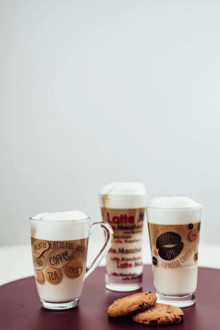 Das wunderschöne, 6-teilige Latte Macchiato Gläser Set ENJOY des Herstellers LEONARDO ist mit markanten Schriftzügen verziert. Mit einem Fassungsvermögen von jeweils 280 ml können Sie ihren Gästen wunderbare Kaffeekreationen servieren.