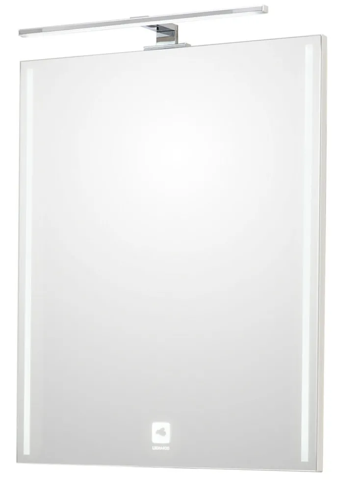 Der hochwertig verarbeitete Flächenspiegel aus dem Hause LEONARDO hat die Maße 50 x 60 cm und überzeugt mit seinem geradlinigen Design. Er passt sehr gut über einen kleinen Waschplatz in modernen Bädern oder Duschen mit einer geschmackvollen Einrichtung. Durch seine Aufsatzleuchte und das in zwei Längsstreifen integrierte Effektlicht, fällt der Spiegel sofort ins Auge und sorgt bei der täglichen Körperpflege für die richtige Beleuchtung.