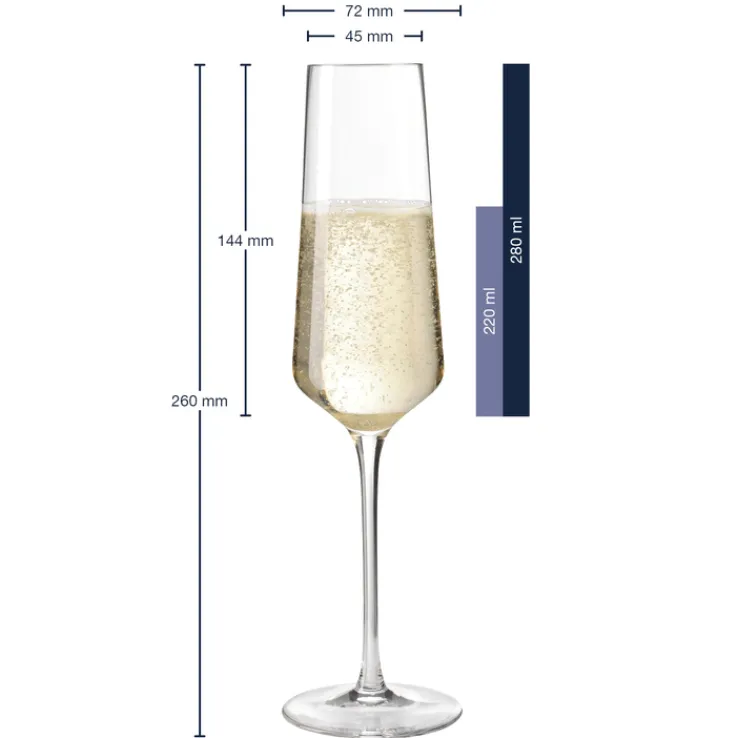 Das Sektglas aus der Serie PUCCINI von Leonardo – Glaskoch besticht durch sein elegantes Design und die hochwertige Verarbeitung aus Kristallglas. Mit einer Höhe von 26 cm und einem Fassungsvermögen von 280 ml eignet es sich ideal für den Genuss von Sekt und anderen Schaumweinen. Die klare, transparente Optik unterstreicht die edle Erscheinung und passt zu jedem Anlass.
