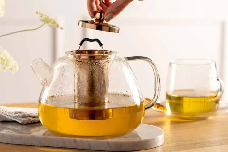 Die LEONARDO Teekanne TÈ PER TE besteht aus hochwertigem und transparentem Qualitätsglas. Es ist stoß- und kratzfest, alltagstauglich und kann sehr gut in der Spülmaschine gereinigt werden. Der Einsatz der LEONARDO Teekanne TÈ PER TE ist in einem kupfernen Farbton gehalten. Die Teekanne bietet Platz für 1500 ml Flüssigkeit und weist eine bauchige Form auf.