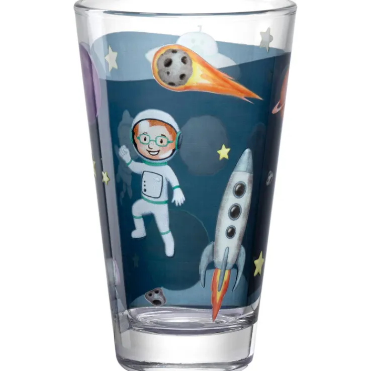 Das LEONARDO Trinkglas BAMBINI AVVENTURA Weltall fasst 200 ml und ist spülmaschinenfest.