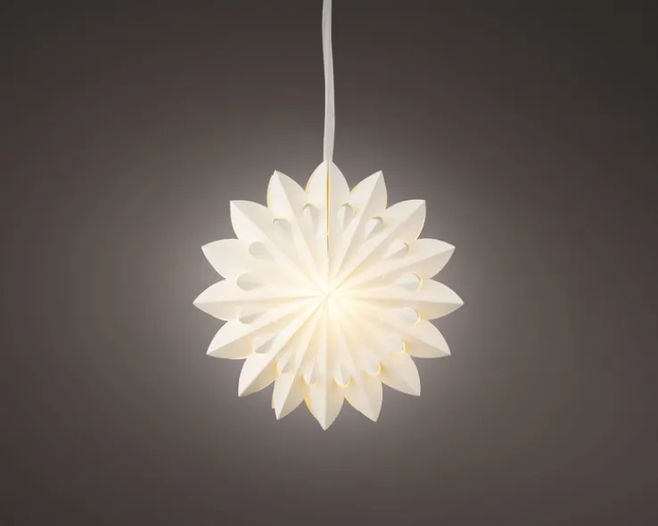 Sterne zählen zu den beliebtesten Weihnachtsornamenten. Am schönsten ist es, wenn sie – wie das Lichtobjekt LED Stern – selbst leuchten. Es ist mit einer fest eingebauten Micro LED Beleuchtung ausgestattet. Ihr warmweißes Licht bringt die Schönheit des edlen Sternornaments voll zur Geltung. Die Einsatzmöglichkeiten sind vielfältig: Am Fenster, an Tannenzweigen, als Anhänger an einer Deckenleuchte und natürlich am Weihnachtsbaum trägt es zur festlichen Weihnachtsstimmung bei.