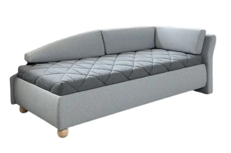 Die Liege LINDSAY präsentiert sich in einem modernen Design mit klaren Linien und einem hellgrauen Bezug. Die Oberfläche zeigt eine gesteppte Struktur, die dem Möbelstück eine dezente Musterung und zusätzliche Tiefe verleiht. Das Material besteht aus einer Holznachbildung, die für Stabilität sorgt, während der Polsteraufbau mit Taschenfederkern Komfort beim Sitzen und Liegen bietet.