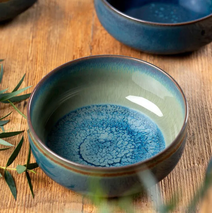 Die runde Schale ist hochwertig verarbeitet und besteht aus Premium Porzellan. Durch die zweifarbige Reaktivglasur sind die glatten und glänzenden Oberflächen strapazierfähig und jede Schale ist ein Einzelstück. Die schöne Schale ist mikrowellenfest und spülmaschinengeeignet.