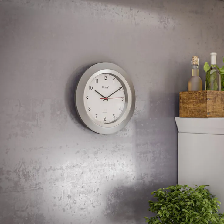Wer sich für die Wanduhr von Mebus entscheidet, braucht sich keine Gedanken mehr darüber zu machen, sie richtig einzustellen. Da es sich um eine Funkuhr handelt, erfolgt die Zeitumstellung automatisch. Ob in der Küche, im Wohn- oder Arbeitszimmer: Dank ihres schlicht universellen Designs findet die Uhr in praktisch jedem Raum ihren Platz. Um mehr Übersichtlichkeit zu gewährleisten, ist der Sekundenzeiger ganz in Rot gehalten.