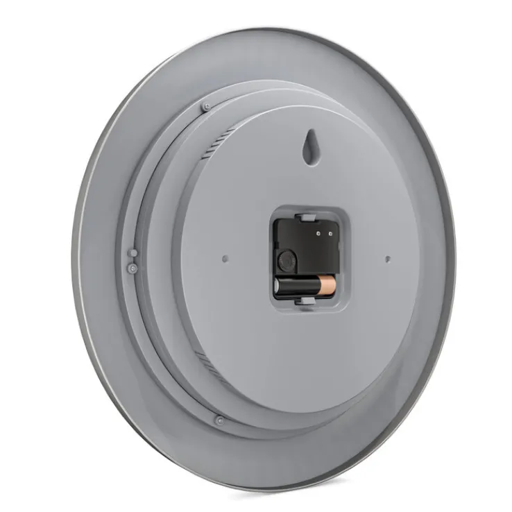 Die Funk-Wanduhr 19450 DCF des Herstellers Mebus ist ein silberfarbiges und multifunktionales Modell. Sie hat einen 30 cm großen Durchmesser und ist mit einem Thermo- und Hygrometer ausgestattet. Somit zeigt sie nicht nur die Zeit, sondern misst auch die aktuelle Temperatur und gibt Hinweise auf den aktuellen Stand der Luftfeuchtigkeit. Die Zeitumstellung führt die funkbetriebene Uhr in Eigenregie durch.