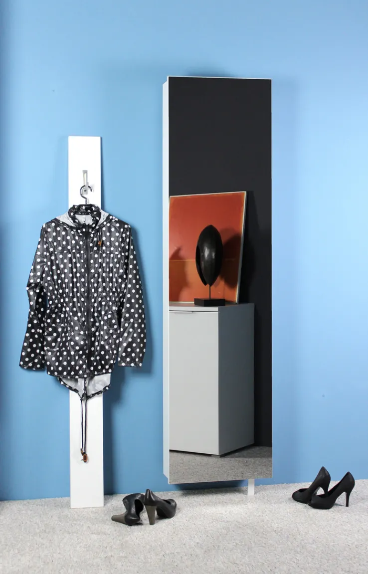 Die drehbare Spiegelfront verleiht dem Schrank nicht nur eine elegante Optik, sondern ist auch äußerst praktisch für den täglichen Gebrauch.
