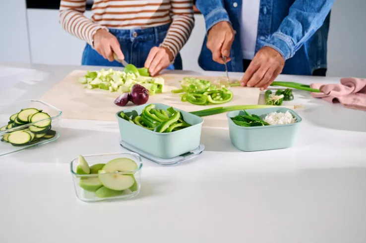 Das stapelbare Set besteht aus einer 1 Liter Dose und zwei 700 ml Dosen. Dank der Verwendung von BPA-freiem Kunststoff sind die Frischhaltedosen für Mikrowelle und Dampfgarer geeignet und lassen sich zudem unkompliziert in der Spülmaschine waschen. Der Deckel mit abnehmbarem Dichtungsring sorgt für einen perfekten Erhalt des Aromas. Zudem ist der Deckel mit einem Entlüftungsventil versehen, das Dampf nach dem Erwärmen entweichen lässt. Natürlich ist der Deckel trotz sicherem Halt einfach zu öffnen.