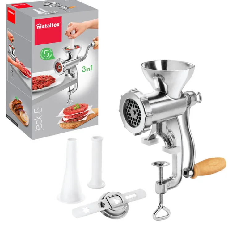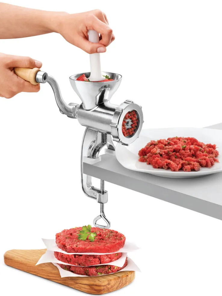 Dieser Fleischwolf ist der perfekte Helfer für echte Kochfans. Er besitzt einen Spritzgebäckaufsatz, einen Wurstfülltrichter und einen Stößel. Die Schnecke ist aus Hartkunststoff gefertigt. Das Gerät ist robust und langlebig und kann leicht gereinigt werden. Mit diesem Küchengerät wird das Hackfleisch für Ihre Gerichte immer frisch hergestellt und schmeckt mindestens so gut wie frisch vom Metzger. Es bringt auch Abwechslung in die Küche, denn Schwein, Rind, Lamm oder Huhn können hier verarbeitet werden. Lecker schmecken sicher auch die eigenen Wurstspezialitäten.