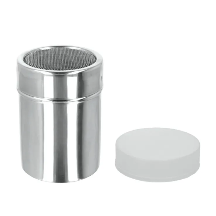 Die silberfarbige Puderzucker- und Kakaodose aus dem Hause metaltex hat eine Höhe von 9,3 cm und ist ein vielseitig verwendbarer Helfer in der modernen Küche. Durch das feine Drahtsieb sind Kaffeespezialitäten, Kuchen, Torten oder Desserts im Nu elegant verziert. Damit der Puderzucker oder der Kakao keine Feuchtigkeit zieht, ist die Dose mit einem dicht schließenden Deckel ausgestattet.