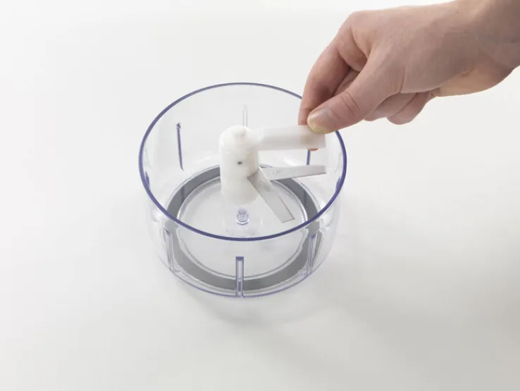 Der hochwertige Zerkleinerer ist aus stabilem Kunststoff gefertigt. Die scharfen Klingen sind aus säurefestem, geschmacksneutralem und lebensmittelechtem Edelstahl hergestellt. Alle Teile des Multi-Zerkleinerers sind einfach von Hand oder in der Spülmaschine zu reinigen.