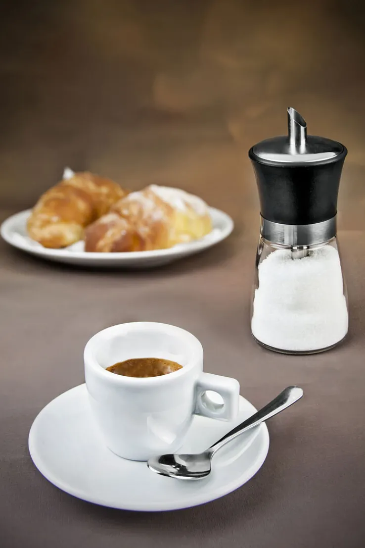 Der hochwertige metaltex Zuckerstreuer besteht aus haltbaren Materialien wie Glas, Kunststoff und Metall und zeichnet sich durch eine angenehm moderne und elegante Optik aus. Der durchsichtige Zuckerbehälter erlaubt stets einen schnellen Blick auf den aktuellen Füllstand im Inneren des Zuckerstreuers. Dieser hat mit seiner runden Form ein Fassungsvermögen von 150 ml. Die Ausgießöffnung besteht wie ein Teil des Deckels aus elegant silberfarbigem und rostfreiem Metall. Abgerundet wird das Design durch Anteile aus dezent schwarzem Kunststoff. Der Zuckerstreuer erlaubt eine sehr genaue und unkomplizierte Portionierung der Zuckermenge. Im praktischen 6er Set ist der metaltex Zuckerstreuer durchaus nicht nur für die Gastronomie interessant: Auch in Privathaushalten kann die Nutzung mehrerer Zuckerstreuer Sinn machen, um zum Beispiel fertige Mischungen von Zimtzucker oder anderen Variationen direkt gebrauchsfertig zur Hand zu haben.