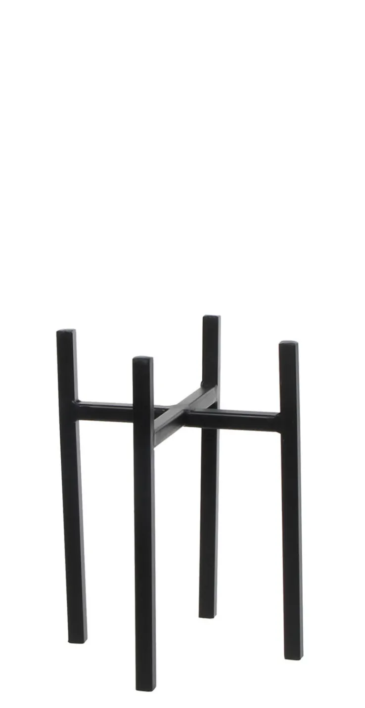 Der schwarze Blumentopfständer ASCOT ist 16 x 16 cm groß und hat eine Höhe von 25 cm. Er besteht aus robustem Metall und eignet sich für Blumentöpfe mit einem maximalen Durchmesser von 16 cm.