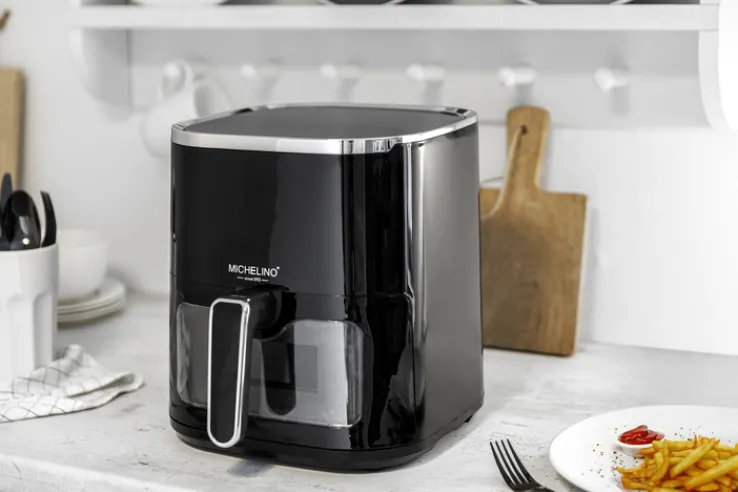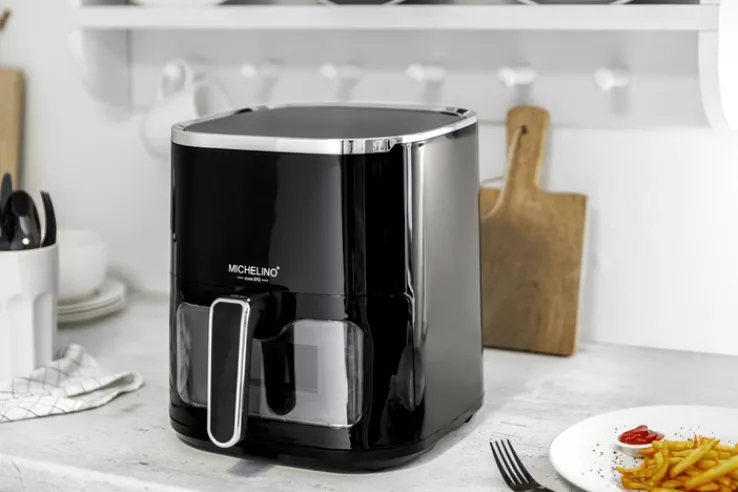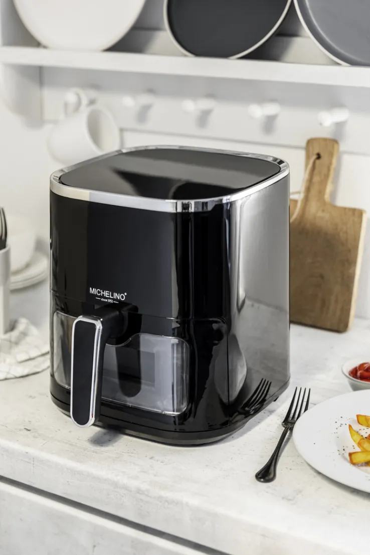 Die Heißluftfritteuse der Marke MICHELINO verfügt über eine Temperaturregelung von 80 °C bis 200 °C. Eine 60-Minuten-Zeitschaltuhr ermöglicht die präzise Anpassung an unterschiedliche Gerichte. Mit 12 One-Touch-Kochfunktionen lassen sich Gerichte wie Pommes Frites oder Chicken-Nuggets mit nur einem Fingertipp zubereiten. Das leicht ablesbare Display sorgt für eine intuitive Bedienung. Die Bratrost 360° C Technologie gewährleistet ein gleichmäßiges Garen mit minimalem bis gar keinem Ölverbrauch. Dank Antihaftbeschichtung ist die Reinigung unkompliziert.