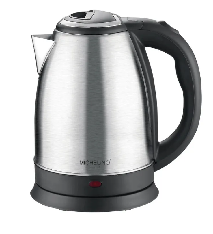 Dieser Wasserkocher der Marke MICHELINO aus der Serie 20800 ist aus mattem, silberfarbenem Edelstahl gefertigt und besitzt eine ovale Form. Die Oberfläche zeigt eine gebürstete Optik, während der Griff, Deckel und Sockel in Schwarz ausgeführt sind. Das Gerät misst 17 cm in der Länge, 20,5 cm in der Breite und 23 cm in der Höhe. Das Fassungsvermögen beträgt 1.800 ml, das Gewicht liegt bei 1,1 kg.