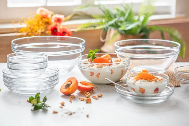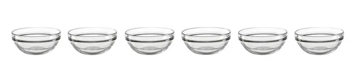 Das 6er Set mit Schalen der Serie TREND von montanta: kann zum Servieren von Nüssen oder anderen kleinen Snacks verwendet werden. Auch für Eis, Obstsalat oder Müsli lässt sie sich nutzen. Die spülmaschinenfesten Schalen aus Klarglas sind mikrowellengeeignet, sodass auch etwas in ihnen erwärmt werden kann. Sie beanspruchen im Schrank oder Regal nur wenig Platz, da sie stapelbar sind.