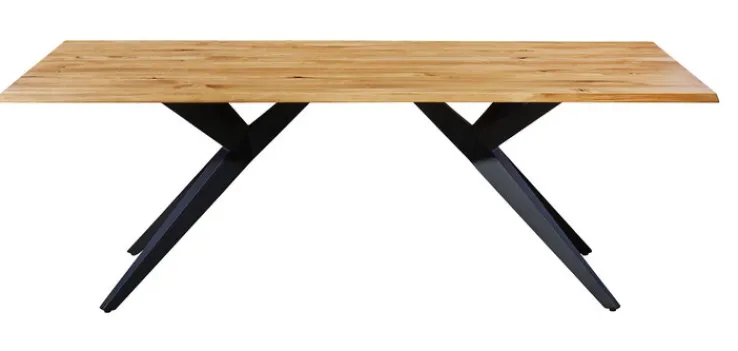 Die Tischplatte aus Eiche massiv und ein schwarzes Metallgestell verleihen dem Esstisch TAMINA 200 x 100 cm aus dem Hause Musterring eine stilvolle Ästhetik. Das ausgefallene Trapezgestell sorgt für viel Beinfreiheit und an der großen Holzplatte finden bis zu acht Personen gemütlich Platz.