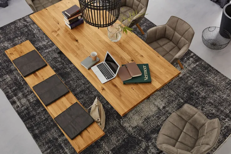 Der Esstisch TAMINA punktet besonders durch seine schlichte Eleganz mit natürlichem Charakter. Durch den Einsatz edelster Materialien und eine sorgfältige Verarbeitung wertet er den Essbereich optisch auf. Das pulverbeschichtete Eisengestell ist ein attraktiver Kontrast zur geölten Tischplatte. Vom Zeitung lesen am Frühstückstisch und dem Abendessen mit der ganzen Familie bis zum Basteln und Spielen bietet der moderne Esstisch allen Personen im Haushalt ausreichend Platz.