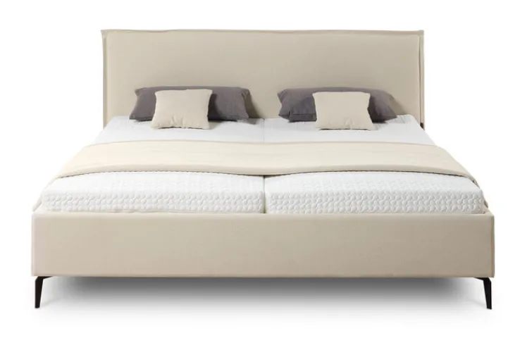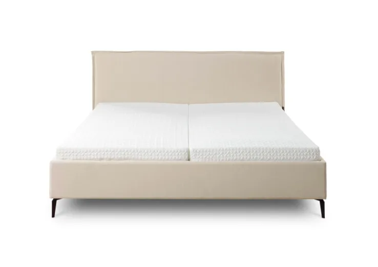 Das Polsterbett ist mit einem Mittelsteg ausgestattet und ist für zwei 90 x 200 cm große Lattenroste und zwei 90 x 200 cm große Matratzen geeignet.