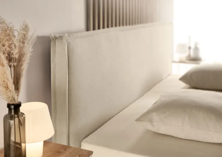 Das Musterring Polsterbett ELOS in Cremebeige mit einer Liegefläche von 180 x 200 cm ist die ideale Basis für einen erholsamen Schlaf und sorgt mit seinem stylischen Design für Eleganz und Modernität im Schlafzimmer.