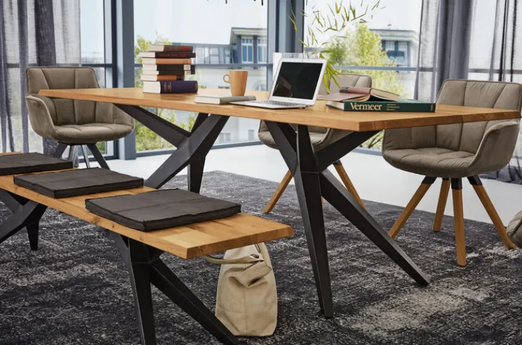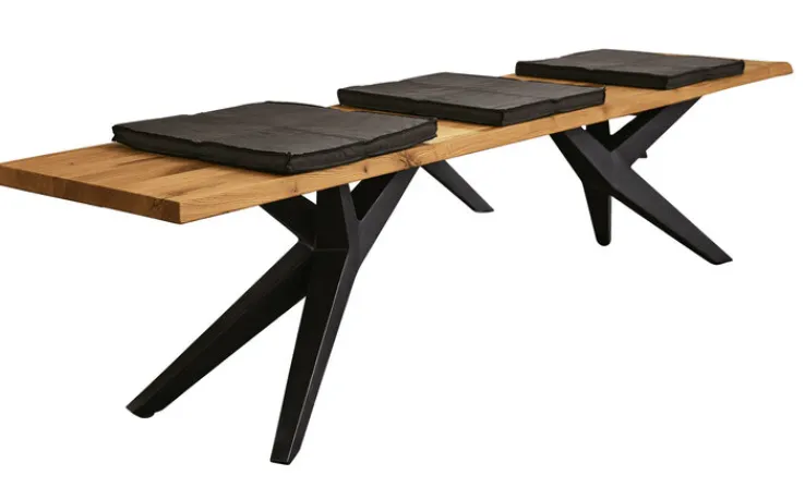 Hochwertige Materialien und eine hervorragende Verarbeitung zeichnen die Sitzbank TAMINA aus. Durch die geölte Oberfläche der Massiveiche tritt die Maserung des Holzes stärker hervor und verleiht der Bank ihren natürlich rustikalen Charakter. Ein markantes Eisengestell sorgt für Stabilität und ist gleichzeitig ein prägnantes Designelement. Die praktische Sitzgelegenheit ist eine platzsparende Alternative zum Esszimmerstuhl. Besonders edel wirkt die Sitzbank TAMINA in Kombination mit dem Tisch der gleichen Serie.