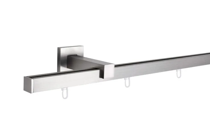 Modernes Wohnen ist schlicht und kommt ohne viel Zierart aus. Das Innenlauf-Komplettset SQUARE fügt sich perfekt ein, denn die aus mattem Aluminium in Edelstahloptik gestaltete Gardinenstange ist glatt und kantig gehalten. Das Material passt sowohl in den Industrial Style als auch in eine moderne Glas-Beton-Metall-Ästhetik. Ob Esszimmer, Wohnraum, Büro oder Jugendzimmer – hier ist einfach alles möglich.