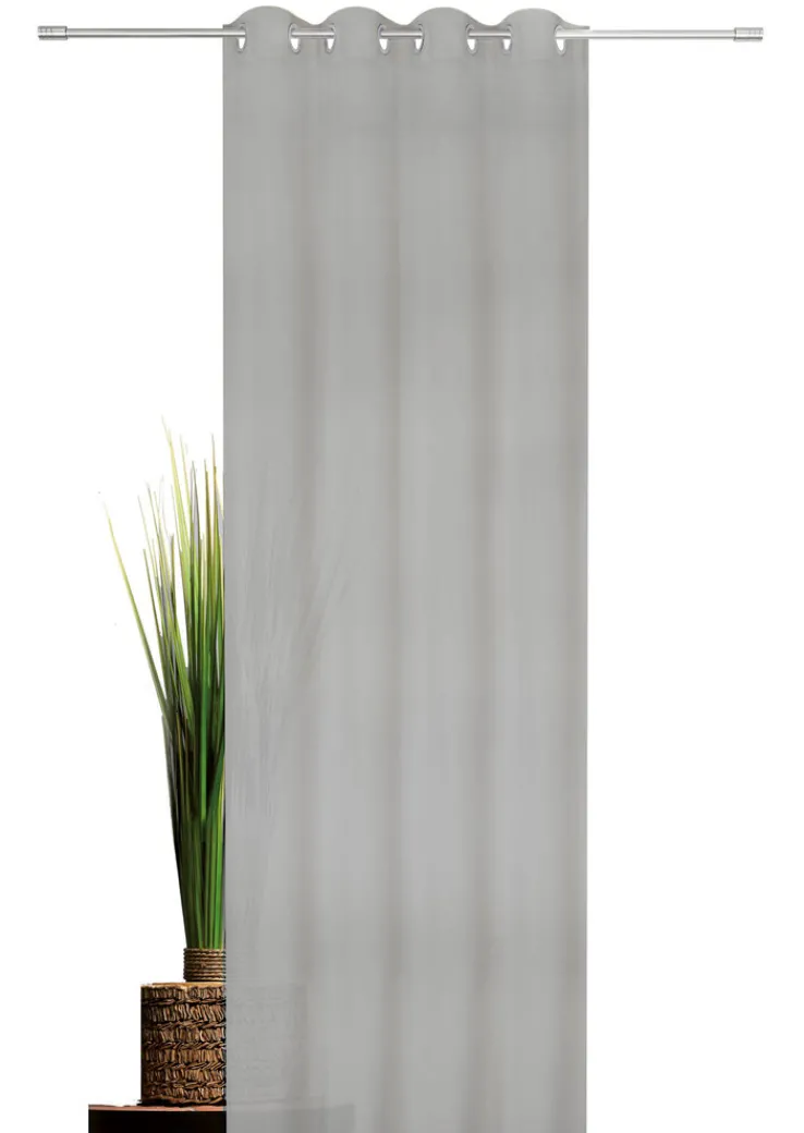 Manchmal ist es einfach zu viel Sonne – dann ist der Ösenschal BREEZE von MY DECO in seinem transparenten Grau genau die richtige Lösung. Der 135 Zentimeter breite und 300 Zentimeter lange Schal lässt sich auf allen handelsüblichen Gardinenstangen leicht bewegen und bricht das Licht, ohne den Raum zu verdunkeln.
