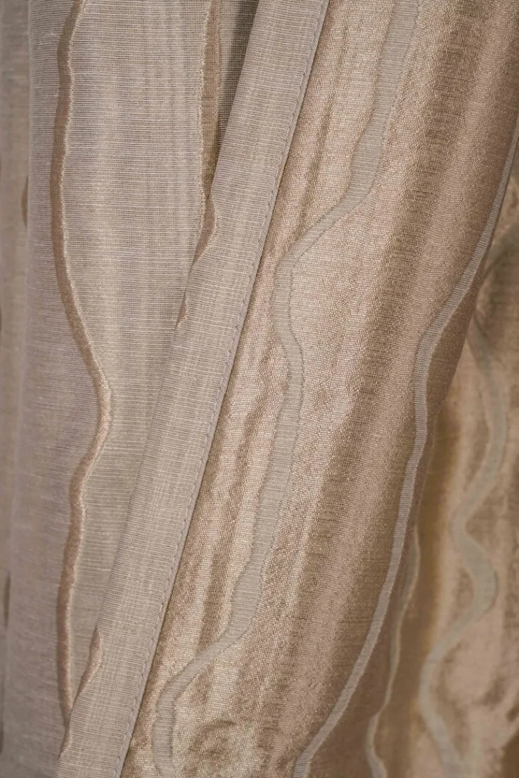 Der my deco Schlaufenvorhang STREAM in der Farbe Sand hat eine Größe von 135 x 245 cm. Er besticht mit einem stilvollen unifarbigen Look mit grafischem Muster und verleiht dem Wohnraum Gemütlichkeit. Gleichzeitig wirkt er abdunkelnd und hält sowohl Sonnenstrahlen als auch fremde Blicke fern.
