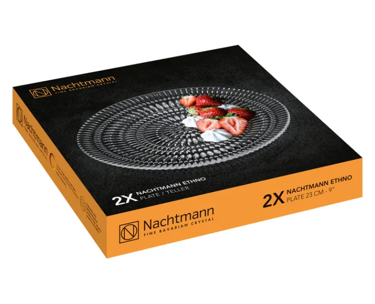 Der Servierteller ETHNO von Nachtmann bietet auf 23 cm Durchmesser viel Platz für kleine Gerichte, Vorspeisen oder Desserts. Mit seinem edlen Kristallglas und der auffälligen Musterung verbindet er auf geschickte Weise eine zeitlose Eleganz mit omnipräsenten kulturellen Einflüssen aus fernen Ländern – das macht ihn nicht nur zum Allrounder, sondern auch zum Hingucker in der Küche.