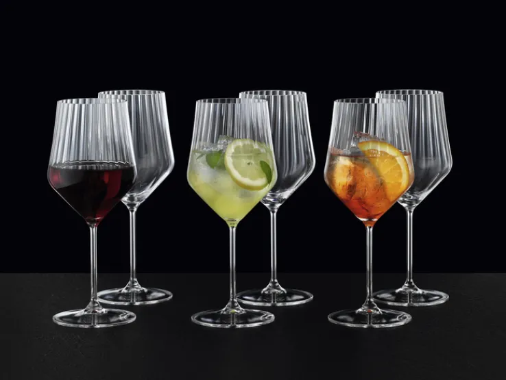 Spritzglas APERITIVO präsentiert sich gleich im praktischen 6er Set: ideal für gesellige Stunden und Feste. Es punktet mit einem sehr hübschen und modernen Design, das jeden Drink perfekt zur Geltung bringt.