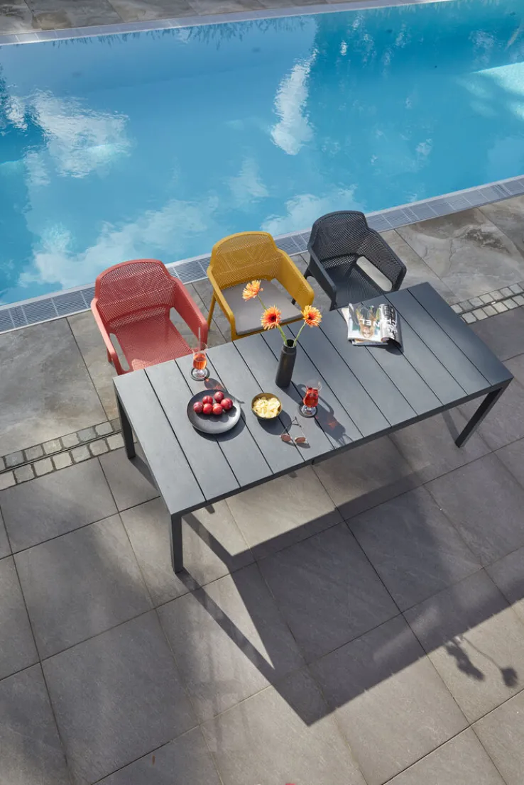 Mit dem NARDI Dining Gartenstuhl NET AL in farbenfrohem Corallo lassen sich Balkon, Terrasse und Garten mit einem farbenfrohen Blickfang ausstatten, der zudem mit gutem Sitzkomfort glänzt.